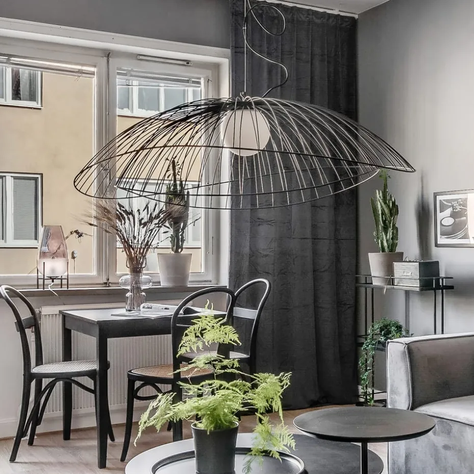 Ray Pendelleuchte Ø115cm ist der große Bruder in der beliebten Serie Ray von Globen Lighting! Die Pendelleuchte schafft einen grafischen Ausdruck dank der wellenförmigen Außenkanten. Die runden Formen der Lampe und die dünnen Metallstäbe lassen sie fast wie einen Planeten wirken, der von der Decke hängt. Die beiden Schirme sind verstellbar, wodurch du selbst entscheiden kannst, ob du sie übereinander oder ineinander platzieren möchtest.