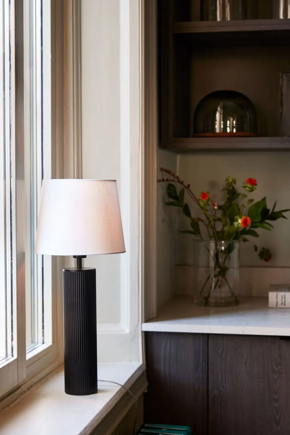 Die Rib 8 Tischlampe von Globen Lighting ist eine elegante Lampe mit einem schlanken geriffelten Fuß. Sie vermittelt einen anspruchsvollen Eindruck und passt perfekt in jeden Raum. Sie ist mit großer Sorgfalt und Qualität hergestellt, was sie zu einer ausgezeichneten Wahl für Ihr Zuhause macht.