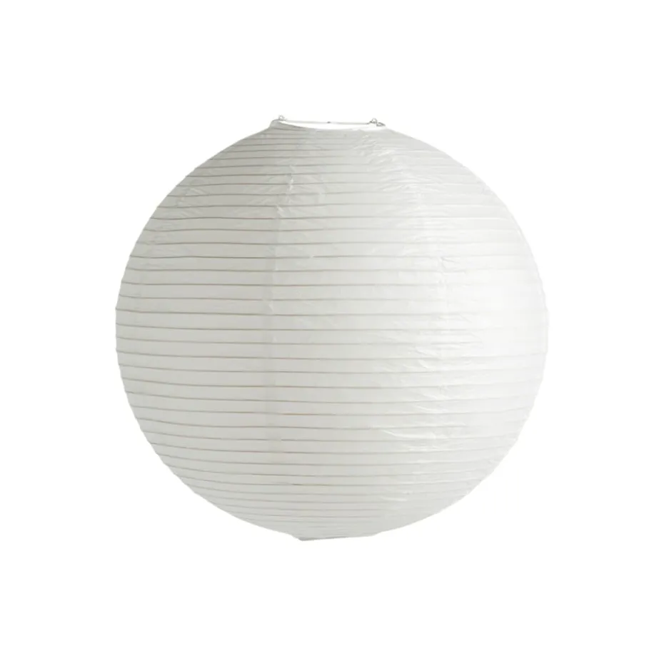 Der Rice paper Leuchtenschirm Ø50cm der dänischen Marke HAY hat ein kugelförmiges Design und besteht aus Papier, das über einen Bambusrahmen gespannt ist. Dank seines Designs und seiner Materialien erinnert der Leuchtenschirm an eine klassische Reispapierleuchte. Der Leuchtenschirm strahlt ein weiches angenehmes Licht aus und passt beispielsweise wunderbar über das Bett oder den Couchtisch.