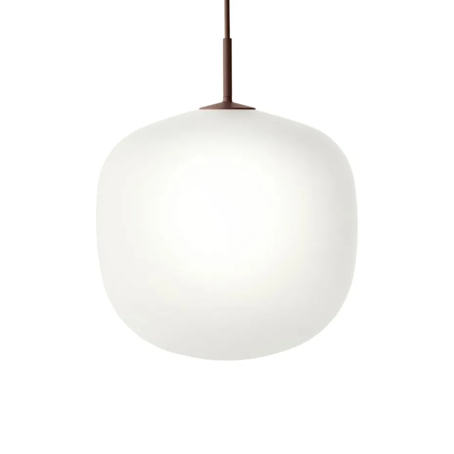 Die Rime Pendelleuchte Ø37cm von Muuto ist eine Pendelleuchte mit einer Glasabdeckung, die vom Stockholmer Designduo TAF entworfen wurde. Die halbtransparente Glaskuppel hat eine sandgestrahlte Oberfläche mit einem farbigen oberen Detail aus pulverbeschichtetem Metall und einer Schnur, die Ton in Ton verläuft. Die verspielte, aber elegante Form der Glaskuppel ist von den weichen und natürlichen Formen einer Eichel inspiriert. Die kleine Pendelleuchte eignet sich genauso gut in ein Fenster wie auch über eine Kücheninsel in einer Reihe mit mehreren Leuchten. Rime ist in vier verschiedenen Größen und vier verschiedenen Farbtönen erhältlich.