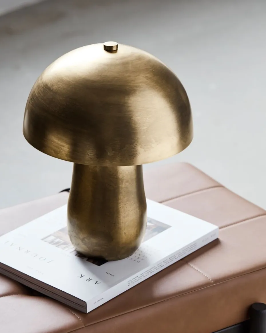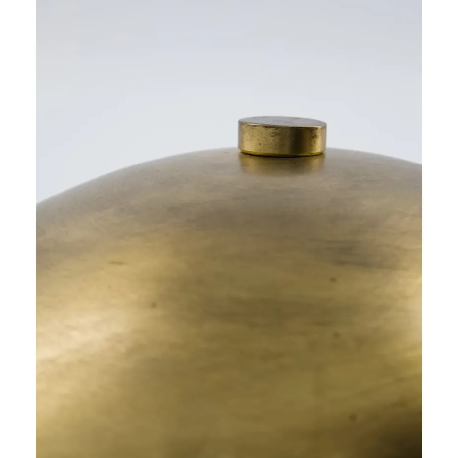 Die Roomie Tischleuchte von House Doctor vereint klassisches Design mit moderner Funktionalität. Hergestellt aus Eisen, Polyester und PVC, verfügt sie über eine elegante antike Messingoberfläche sowie einen weißen inneren Lampenschirm, der das Licht sanft reflektiert. Ideal, um eine warme und einladende Atmosphäre im Wohnzimmer oder Schlafzimmer zu schaffen, und wird zu einem stilvollen Element Ihrer Einrichtung.