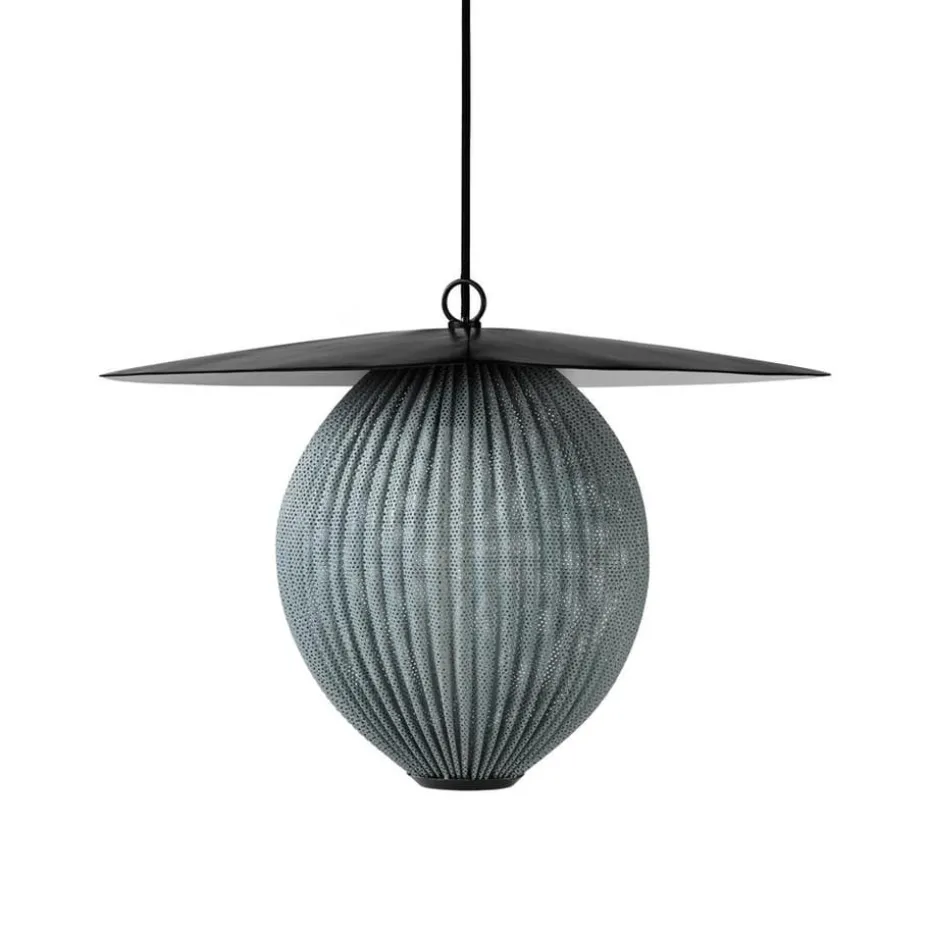 Die Satellite Pendelleuchte – hier mit 45cm Schirmdurchmesser – wurde während der 1950er Jahre vom ungarisch-französischen Designer Mathieu Matégot entworfen. Die dänische Marke Gubi nahm diesen entzückenden Designentwurf auf und feierte 2016 den Relaunch dieser Ikone. Der Lampenschirm aus perforiertem Metall, dessen Farbe wählbar ist, sorgt für ein dramatisches Licht-Schatten-Spiel und eine stimmungsvolle Atmosphäre.