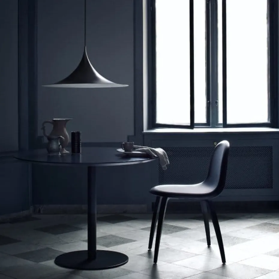 Semi ist ein wahrer skandinavischer Designklassiker, der im Jahr 1968 von den beiden Designern Claus Bonderup und Thorsten Thorup entworfen wurde. Zu dieser Zeit ließen sich die beiden vor allem von geometrischen Formen wie Kreisen, Dreiecken und Quadraten inspirieren. Semi ist eine Pendelleuchte, dessen Lampenschirm beim Betrachten von vorne an die Form von Viertelkreisen erinnert