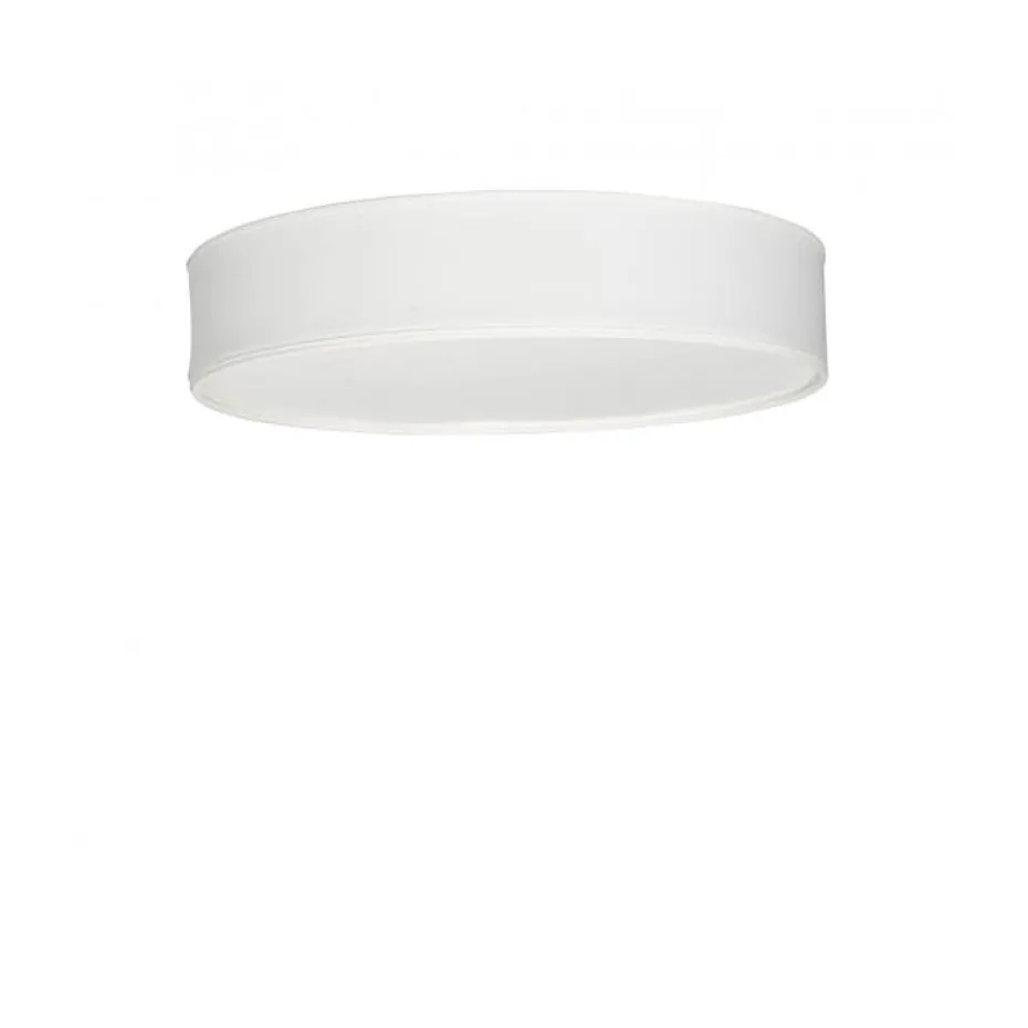 Textildecke aus weißem Stoff, bei der auch der Blendschutz aus Stoff ist. Bietet ein schönes gedämpftes Licht, das gut in Schlafzimmer passt. Lichtquellen nicht enthalten.