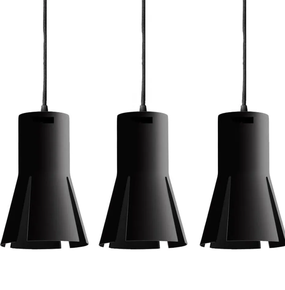 Split ist eine Kollektion frecher Pendelleuchten, die von Åsa Lockner und David Taylor für BSweden designt wurden. Diese Lampe aus schwarz lackiertem Aluminium passt bestens über Esstische oder Konferenztische.