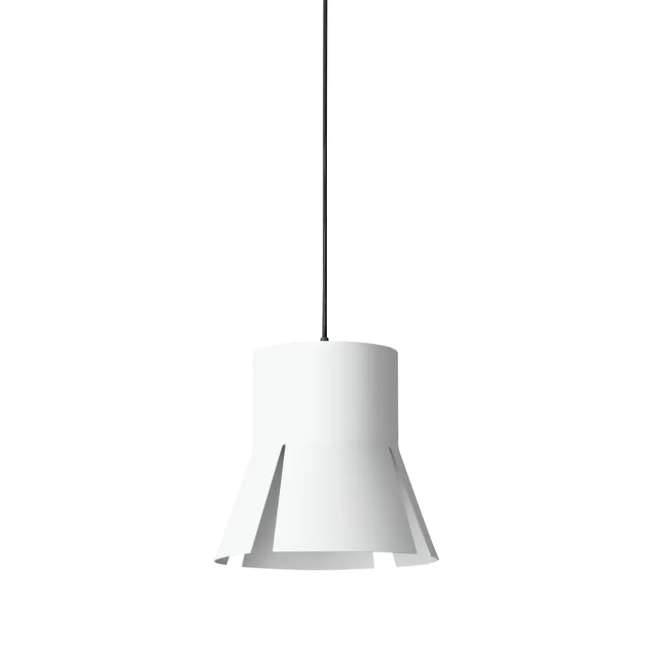 Split ist eine Kollektion frecher Pendelleuchten, die von Åsa Lockner und David Taylor für BSweden designt wurden. Diese Lampe aus weiß lackiertem Aluminium passt bestens über Esstische oder Konferenztische.