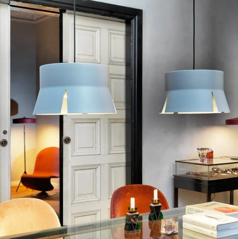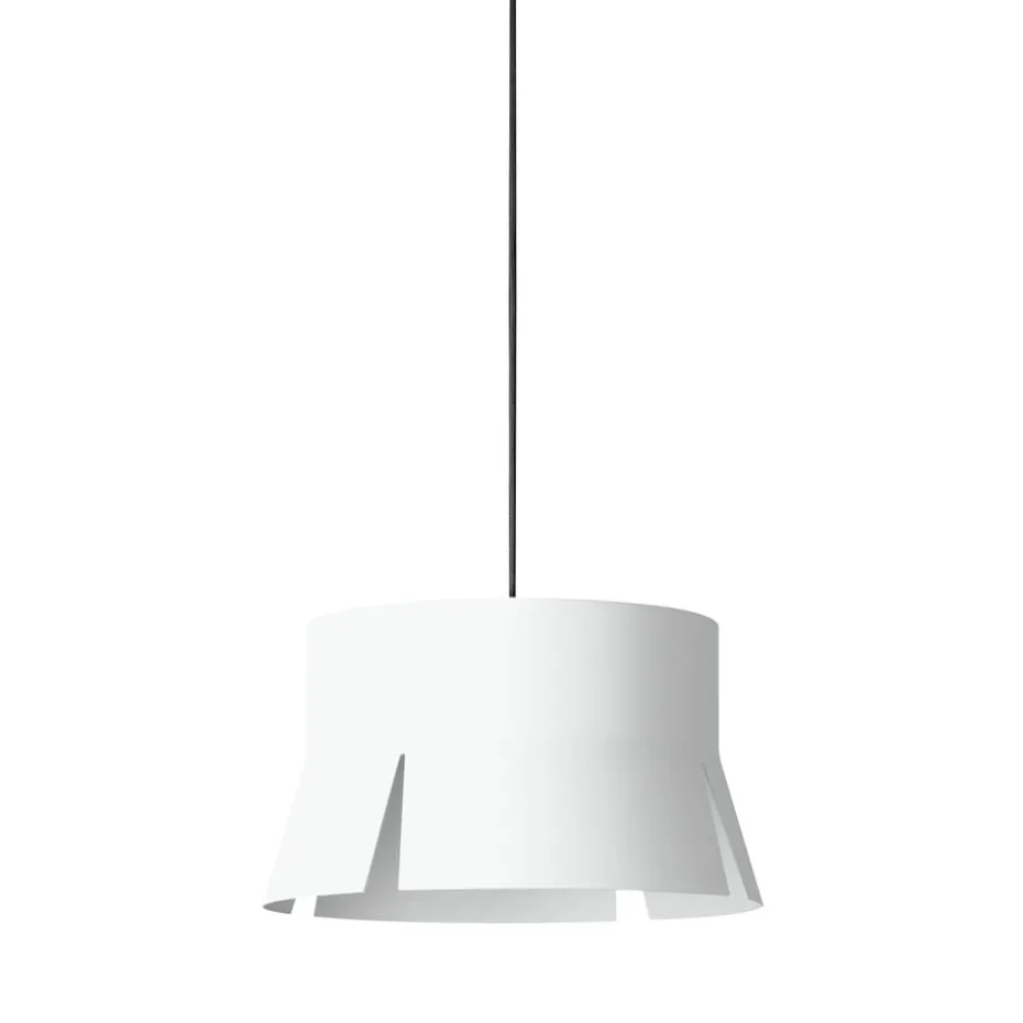 Split ist eine Kollektion frecher Pendelleuchten, die von Åsa Lockner und David Taylor für BSweden designt wurden. Diese Lampe aus weiß lackiertem Aluminium passt bestens über Esstische oder Konferenztische.