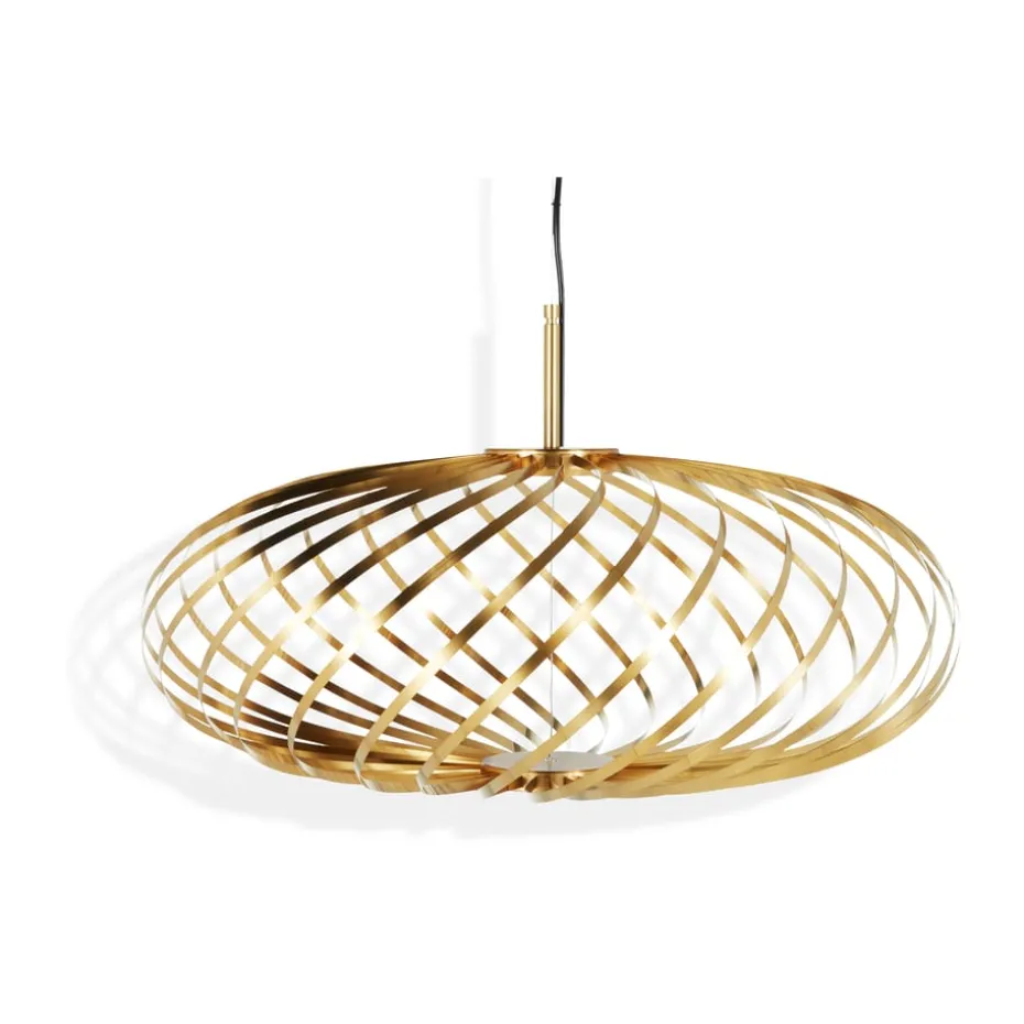 Die Spring pendelleuchte LED brass von Tom Dixon ist eine beeindruckende Deckenleuchte, die aus formbaren Bändern aus rostfreiem Stahl mit einem Messingfinish besteht. Diese Bänder sind um eine speziell angefertigte, dimmbare LED-Scheibe von Tom Dixon arrangiert. Das halbtransparente Design kann angepasst werden, um verschiedene Silhouetten zu erzeugen, wodurch Vielseitigkeit in der Beleuchtung geboten wird. Eine einzigartige Kombination aus Haltbarkeit und Ästhetik. Perfekt, um dem Raum ein anspruchsvolles und funktionales Upgrade zu verleihen.