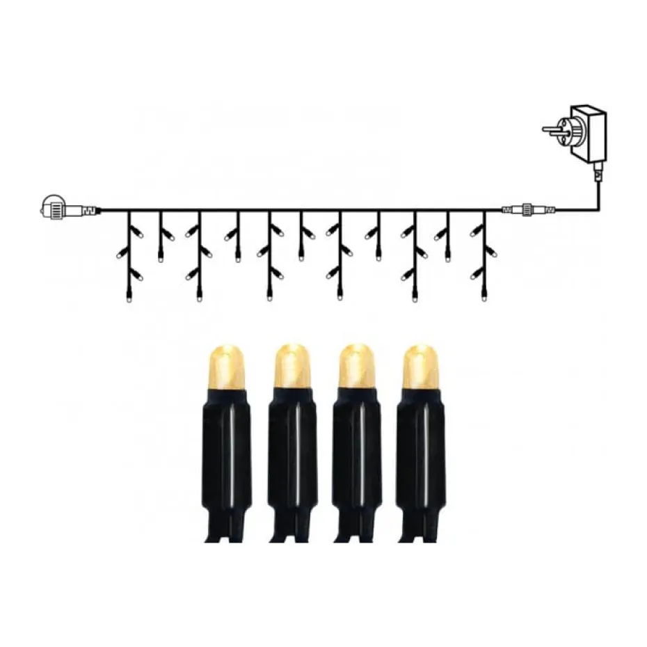 System 24 Produkte ist ein komplettes System für Garten-, Party- und Weihnachtsbeleuchtung. Das Trunkkabel im System bietet mehr Flexibilität und mehr Anschlussmöglichkeiten. Starteinheit mit Eiszapfenschleife und Trafo. Die Schleife hat 49 warmweiße Lichtpunkte und ist 3×0,4m groß.