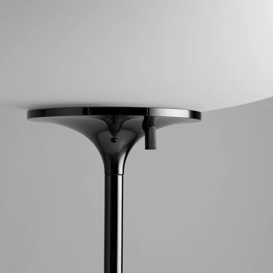Die Stemlite Stehleuchte von Gubi ist eine Neuinterpretation des Originaldesigns des Designers Bill Curry aus dem Jahr 1962. Das Design der Stemlite ist typisch für die futuristischen Einflüsse der 60er Jahre im Design. Die Stehleuchte hat ein Gewicht, das im Fuß der Lampe versteckt ist, wodurch sie trotz ihres großen, ovalen Glasschirms stabil steht.