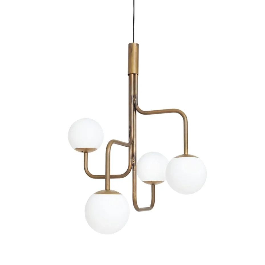 Strapatz Pendelleuchte globus Ø78 cm ist Teil einer Lampenserie von Konsthantverk, entworfen von Sabina Grubbeson. Die Lampen, alle mit Messingrohr, sind in verschiedenen Modellen für Decke, Tisch und Boden erhältlich. Strapatz ist lebendig, symmetrisch und verspielt, aber gleichzeitig klassisch. Das einfache Design ist sorgfältig und persönlich und wird mit hundertjähriger Handwerkstradition in Schweden hergestellt.
