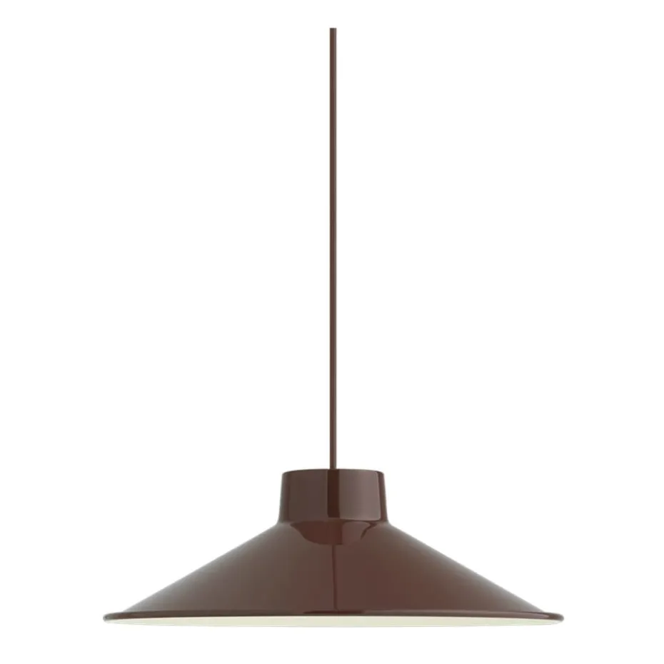 Die Top Deckenleuchte Ø 36 cm von Muuto ist eine schicke Pendelleuchte mit einem Metallschirm im industriellen Stil. Der breite Schirm sorgt für eine gute Lichtverteilung und passt perfekt über den kleineren Esstisch.