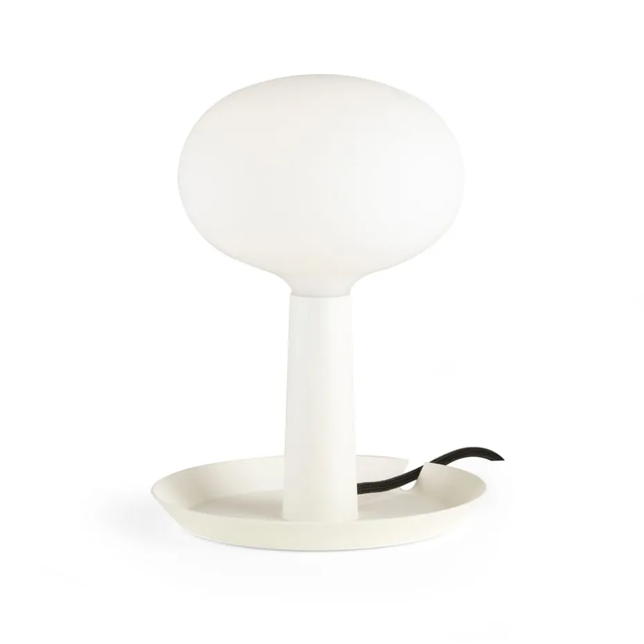 Die Tischleuchte Tray von BSweden kombiniert Beleuchtung und Ablagefläche. Das Opalglas des Lampenschirms gibt ein weiches, dimmbares Licht, das Tablett dient als perfekte Ablagefläche für Kleingegenstände. Das macht diese Tischleuchte aus Schweden perfekt als Nachttischlampe, im Eingangsbereich oder im Kinderzimmer.