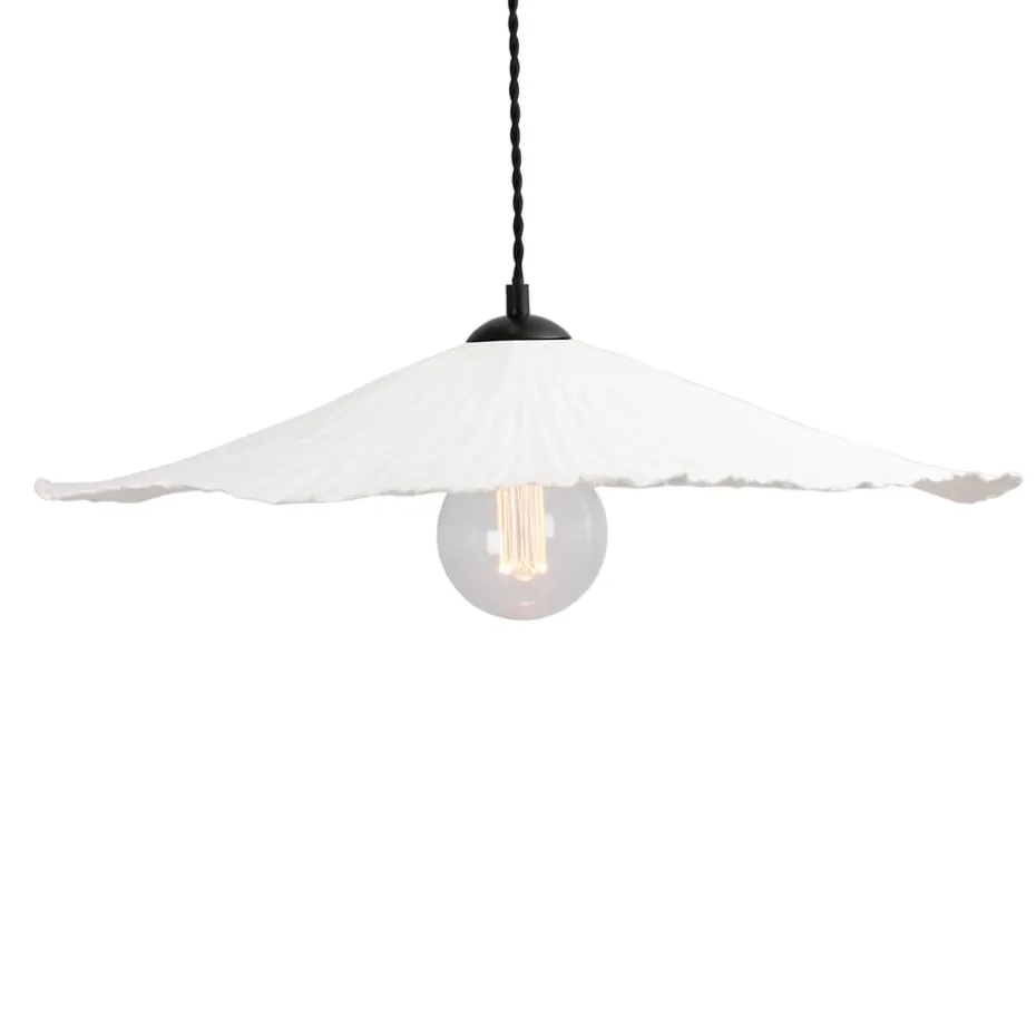 Die Tropez Pendelleuchte 60cm der schwedischen Marke Globen Lighting hat eine auffällige Ästhetik, die an luxuriöse Sonnenhüte und Sonnenschirme erinnert. Der breite, geschwungene Leuchtenschirm vermittelt den Eindruck einer Hut Kante und verbreitet das Licht auf wunderbar angenehme Weise im Raum. Eine aus Recyclingpapier hergestellte Deckenleuchte, die in allen Wohnräumen angewendet werden kann.