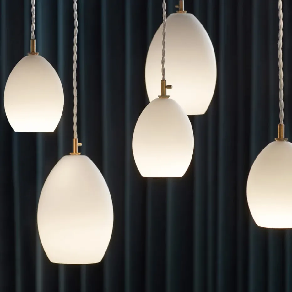 Die Unika Pendelleuchte weiß der Designmarke Northern mit mundgeblasenem Glas und einer gezwirnten Schnur wurde ursprünglich für ein Restaurant in Kopenhagen entworfen. Das Glas der Lampe hat einige Unregelmäßigkeiten, die zum einzigartigen Design beitragen. Die Lampe verbreitet ein warmes Licht und eignet sich sowohl für öffentliche als auch für private Räume.