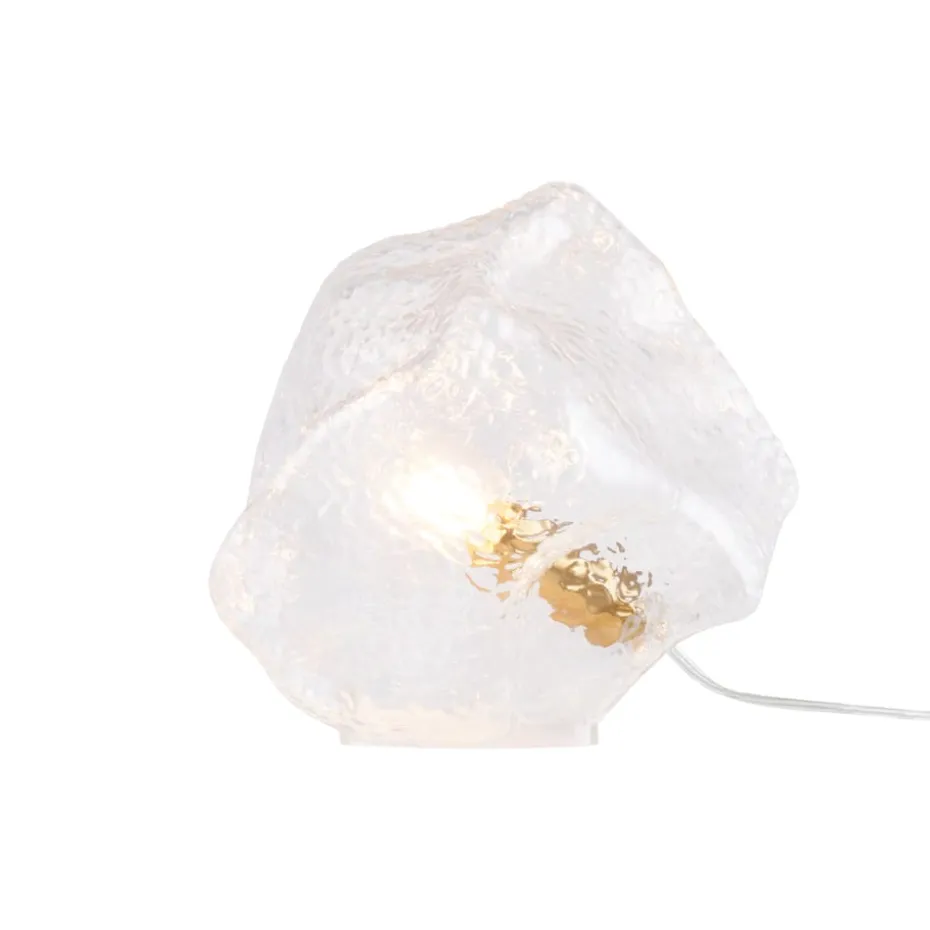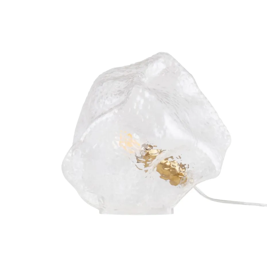 Die Valerie 25 Tischleuchte von Globen Lighting ist eine einzigartige Lichtquelle, die so gestaltet ist, dass sie einem schönen Stein ähnelt. Das mundgeblasene Glas hat eine strukturierte Oberfläche, die das Licht einfängt und eine dynamische Atmosphäre schafft. Jedes Exemplar der Lampe ist eine einzigartige künstlerische Kreation mit natürlichen Variationen im Glas.