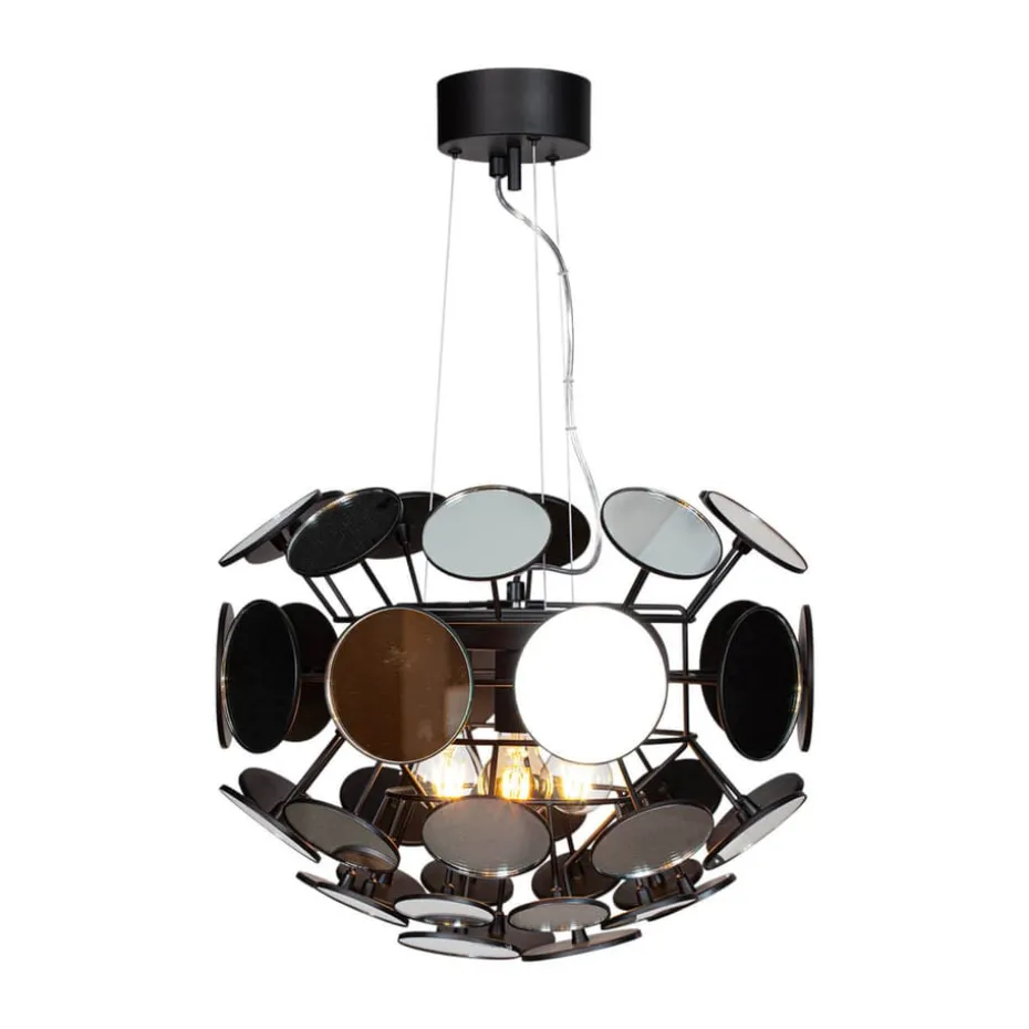 Die Vanita Deckenleuchte Ø50 cm von By Rydéns ist aus Metall gefertigt und hat ein auffälliges Design, das an die Glanzzeiten der Discokugel erinnert. Der Baldachin hat ein einzigartiges, rundes, aber flaches Aussehen und ist von einem Stahlrahmen mit Spiegeln umgeben. Diese Spiegel können im richtigen Licht eindrucksvolle Reflexionen erzeugen, die dem ganzen Raum Leben einhauchen. Die Lampe ist höhenverstellbar und eignet sich perfekt als Mittelpunkt über dem Küchentisch oder im Schlafzimmer.