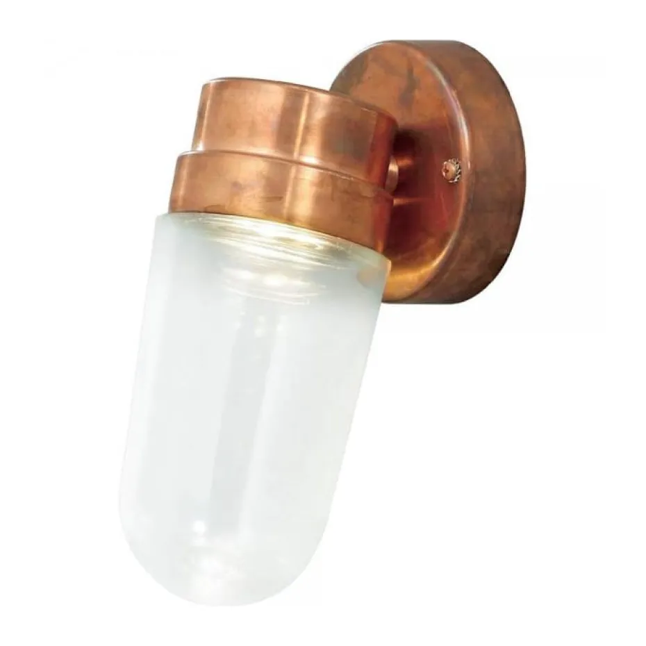 Stilvolle Wandleuchte Vega für den Außenbereich. Aus kupferfarbenem Stahl, mit einer LED-Lampe, die ein warmes und einladendes Licht verbreitet und zudem dimmbar ist. Integrierte LED-Beleuchtung.