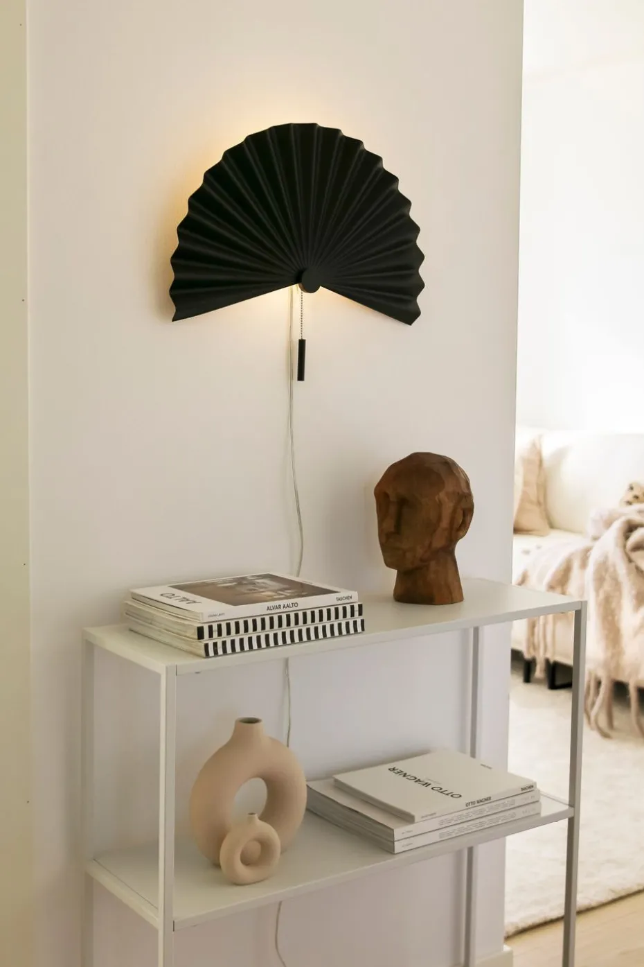 Die Zen Wandleuchte 50 cm von schwedischen Globen Lighting hat ein schlichtes, aber schönes Design, inspiriert von der skandinavisch-japanischen Stilrichtung und ist eine Interpretation des traditionellen Fächers. Die Zen Wandleuchte aus Metall hat eine integrierte LED-Leiste und verbreitet ein angenehmes Licht an der Wand, an der sie angebracht wird.